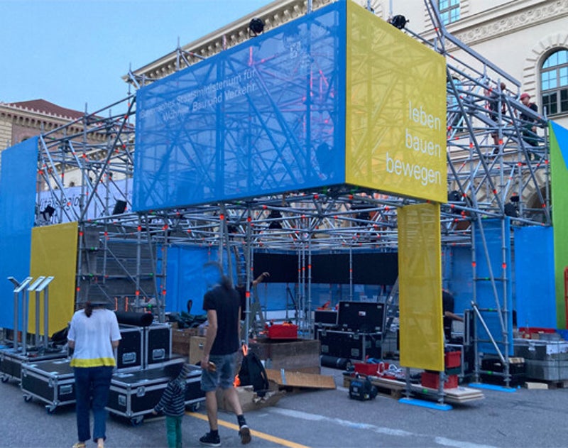 Freihstehender Open Space Messestand für das Bayrische Staatsministerium Wohnen, Bau und Verkehr